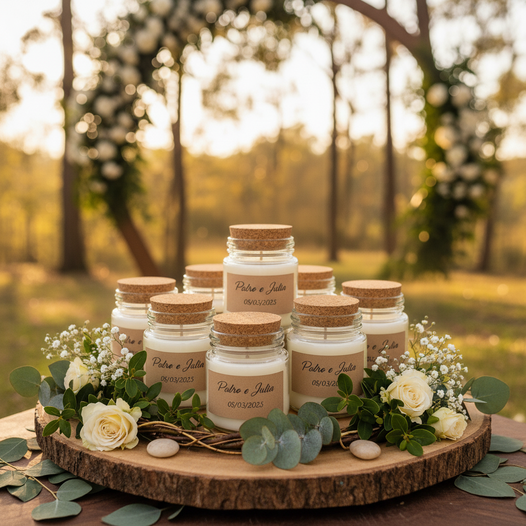 Crie lembranças perfumadas e inesquecíveis com velas artesanais personalizadas. Embalagens elegantes, fragrâncias selecionadas e opções para revenda — tudo produzido com cera 100% vegetal.